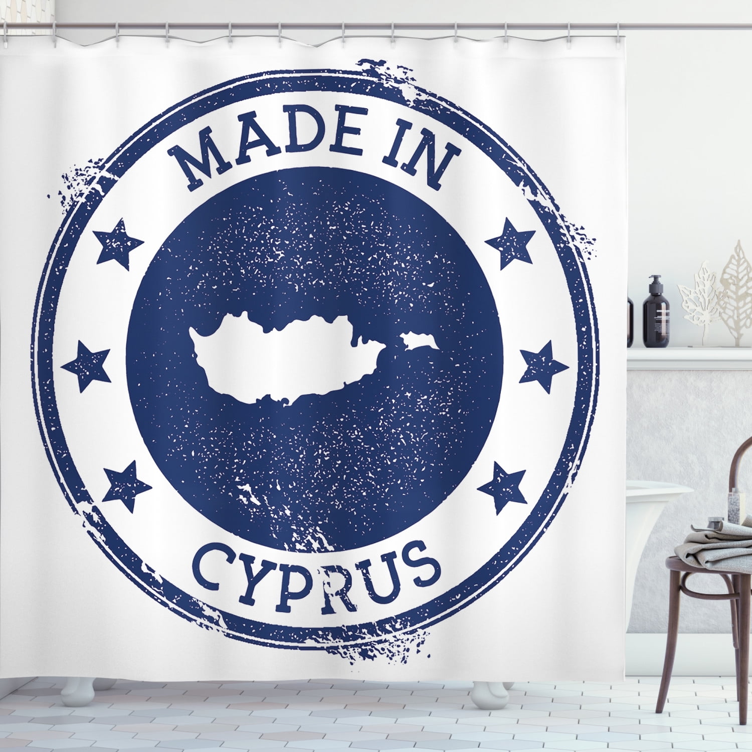 Cyprus Shower Curtain Grunge Style Rubber Stamp Of Southern Cypriot Map And Cyprus Calligraphy Fabric Bathroom Set With Hooks 69w X 75l Inches Long White And Night Blue By Ambesonne Walmart Com